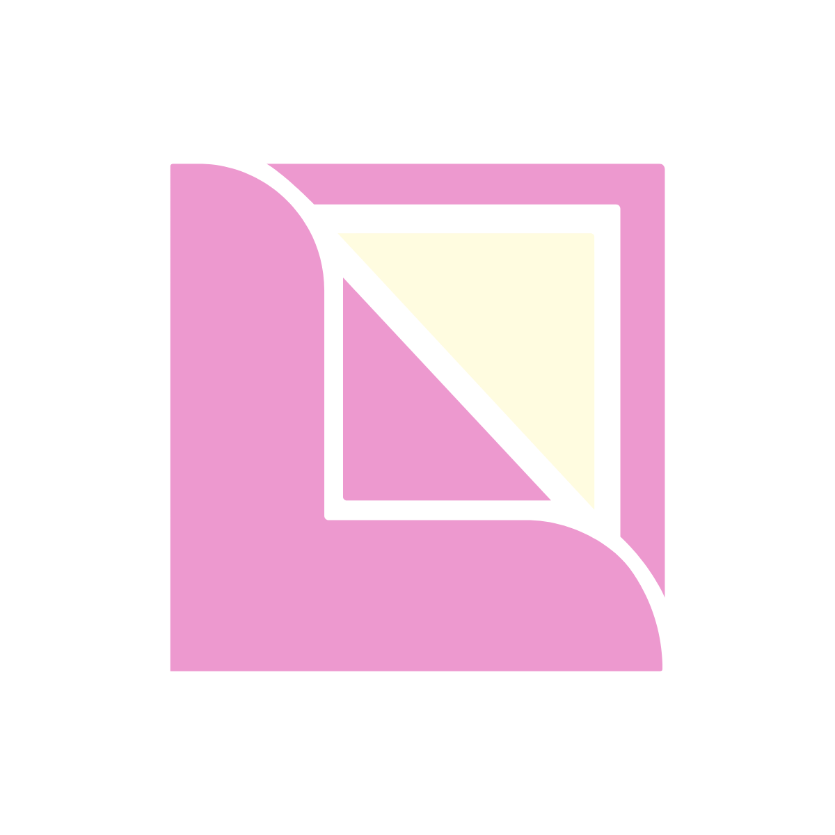 Three layered pink and yellow squares with German text.