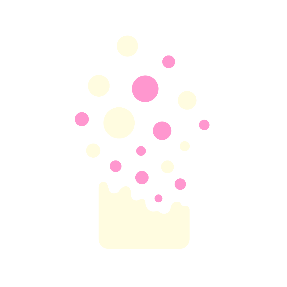 A simple graphic of yellow liquid with yellow and blue bubbles rising from it.