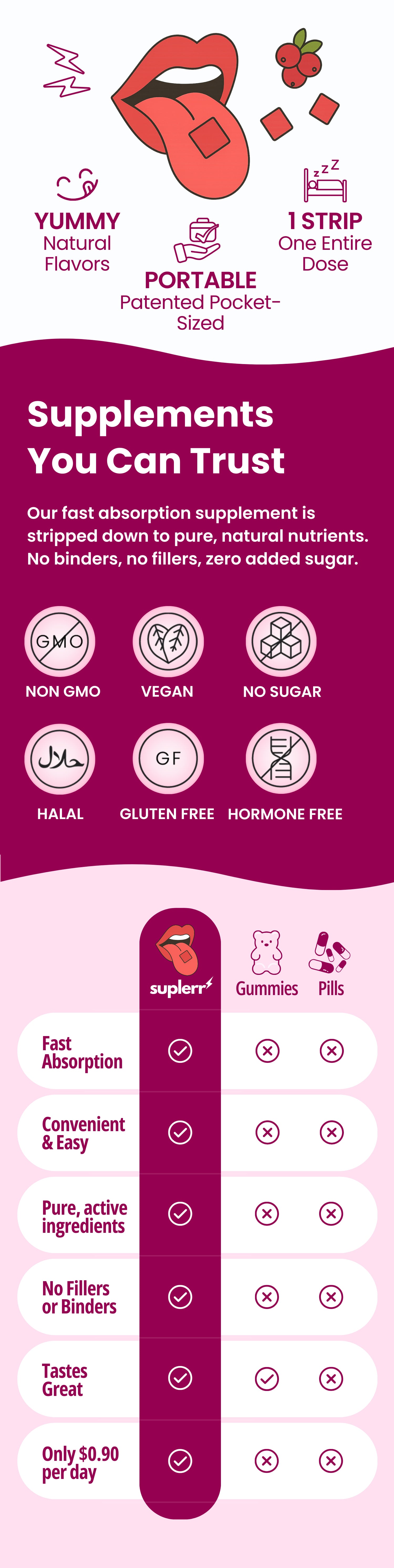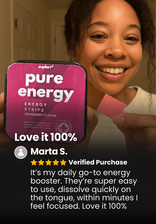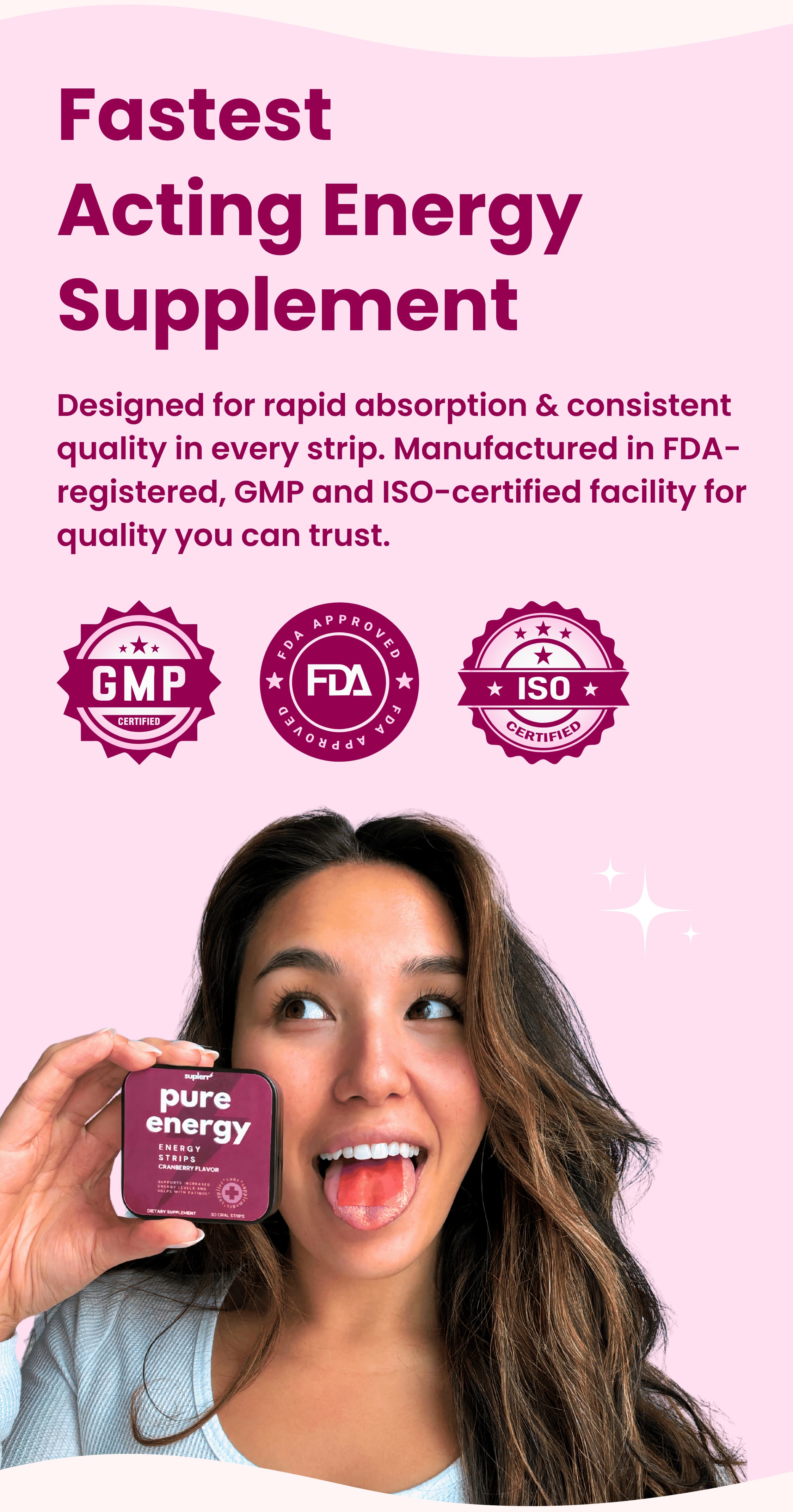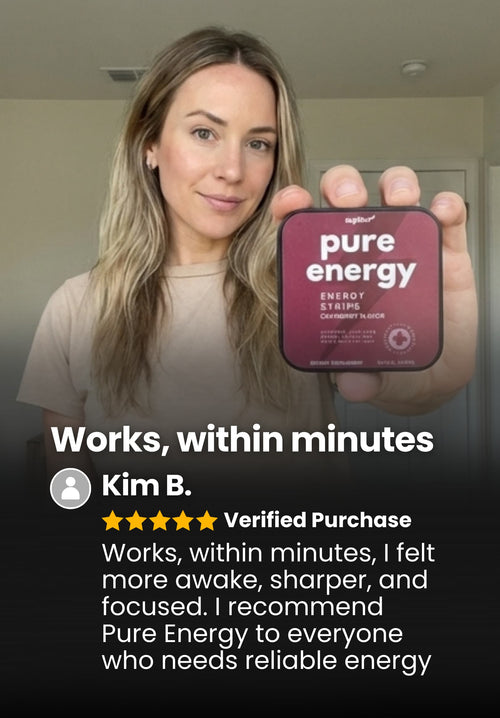 Pure Energy Strips stand out due to their Green Tea Caffeine content, offering a smoother and longer-lasting energy boost. Combined with other cognitive-enhancing ingredients like L-Theanine, these strips provide an all-in-one solution for sustained mental and physical performance.*
