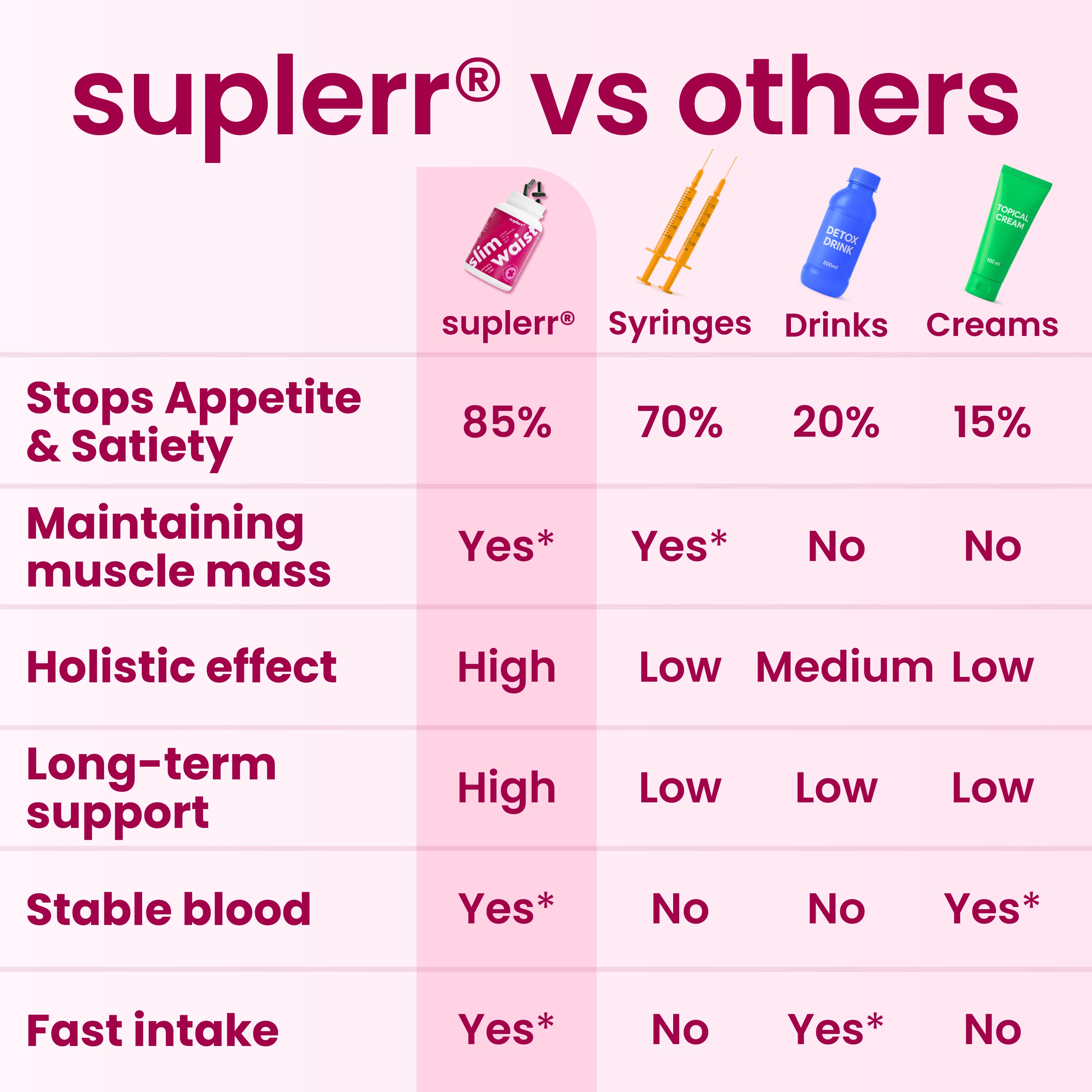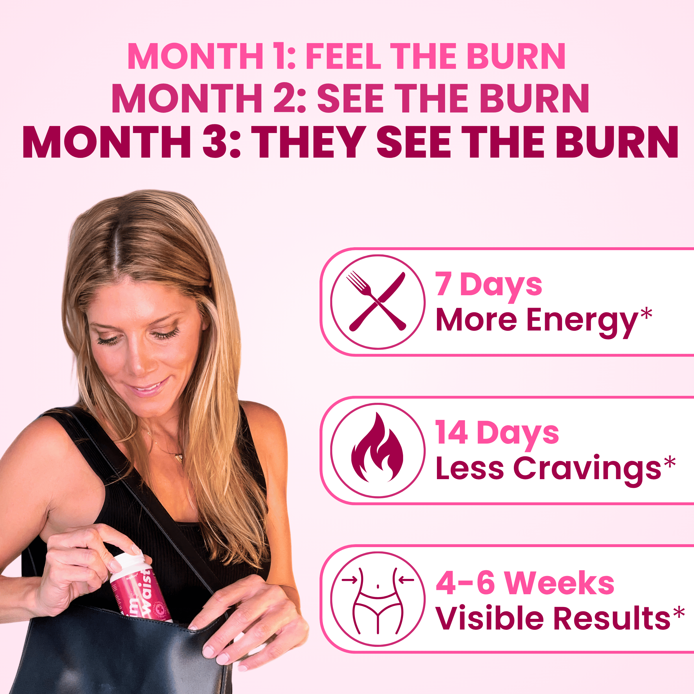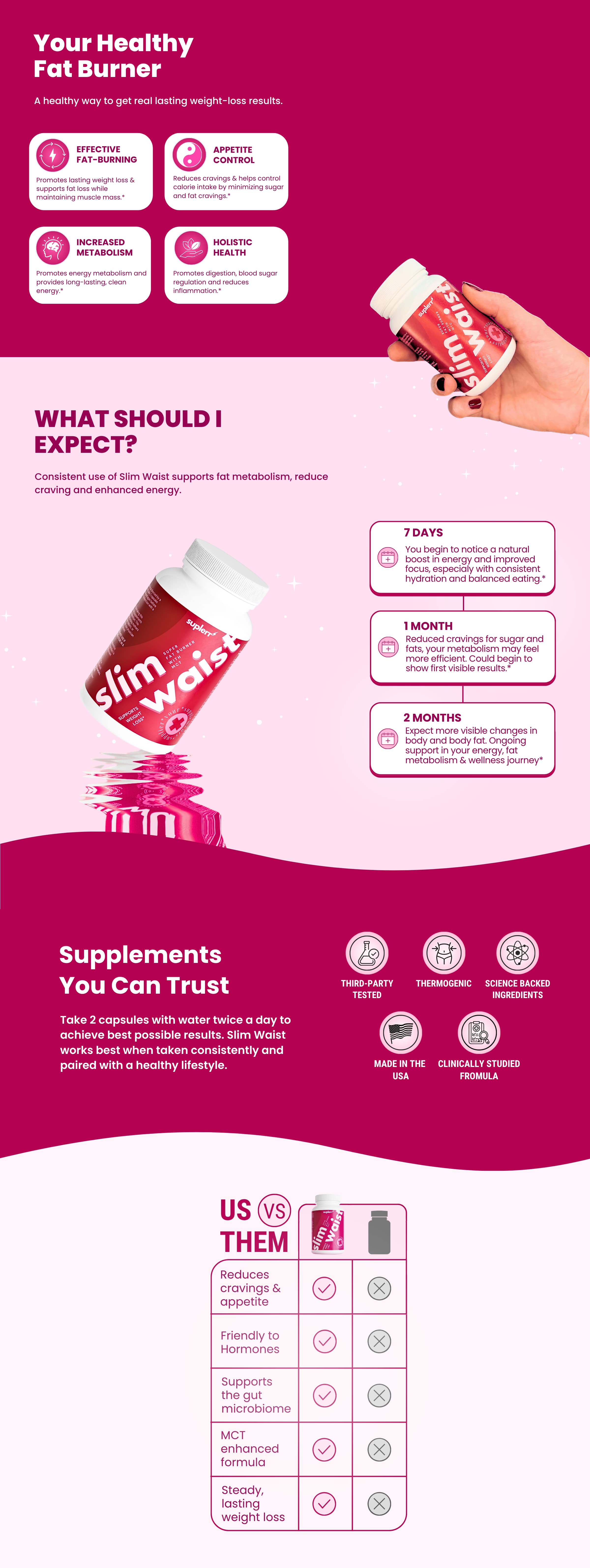 Slim Waist offers a multi-functional approach, combining fat burning, appetite control, and energy support with high-quality ingredients, simplifying your weight loss journey in a way most products don’t.*